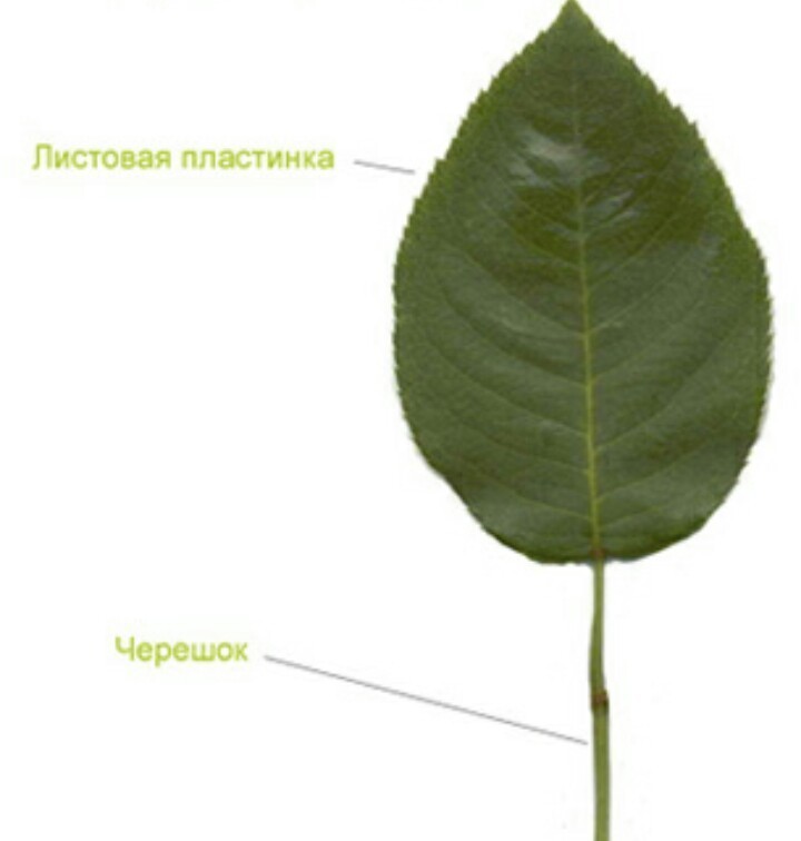 Черешковые листья имеют черешок стебелёк, к которому они крепятся.