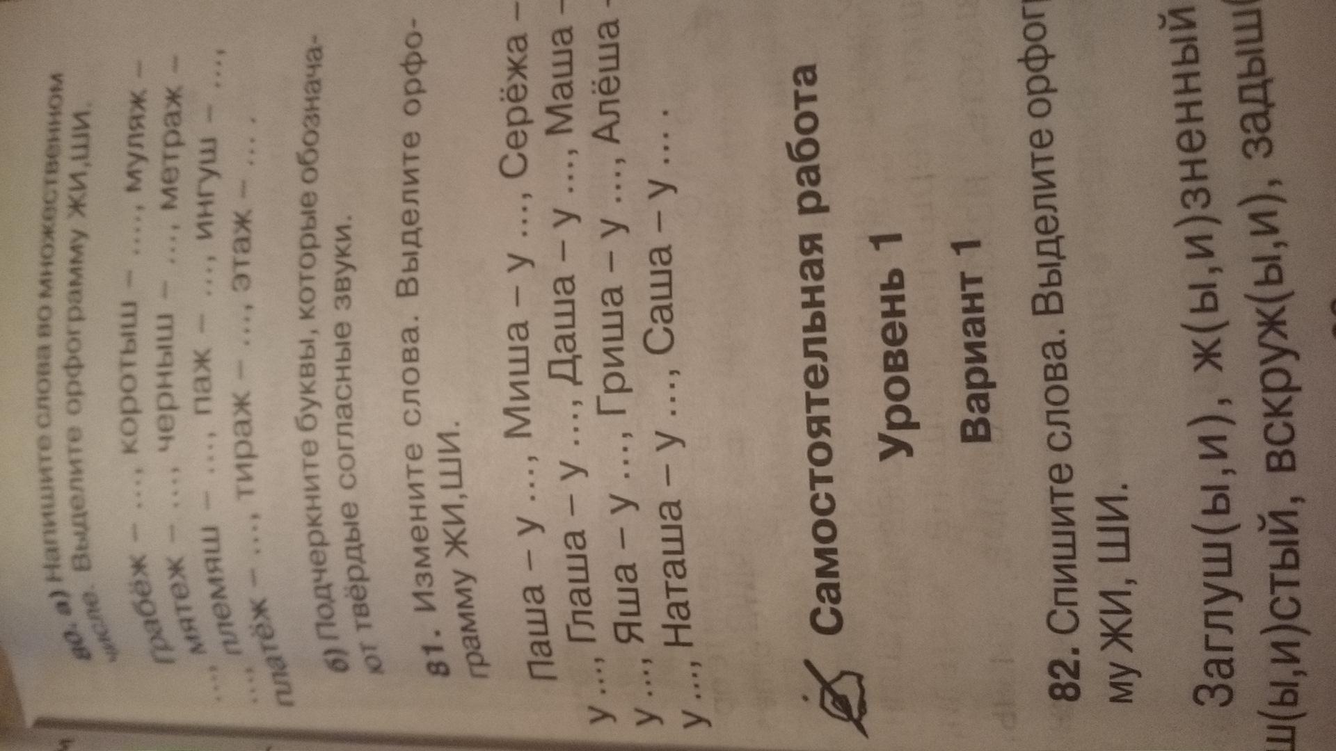 Измените слова Выделите орфограмму жи-ши паша у Миша у Серёжа у глаша у Даша у Маша у Яша у Гриша у Алёша у Наташа у Саша у