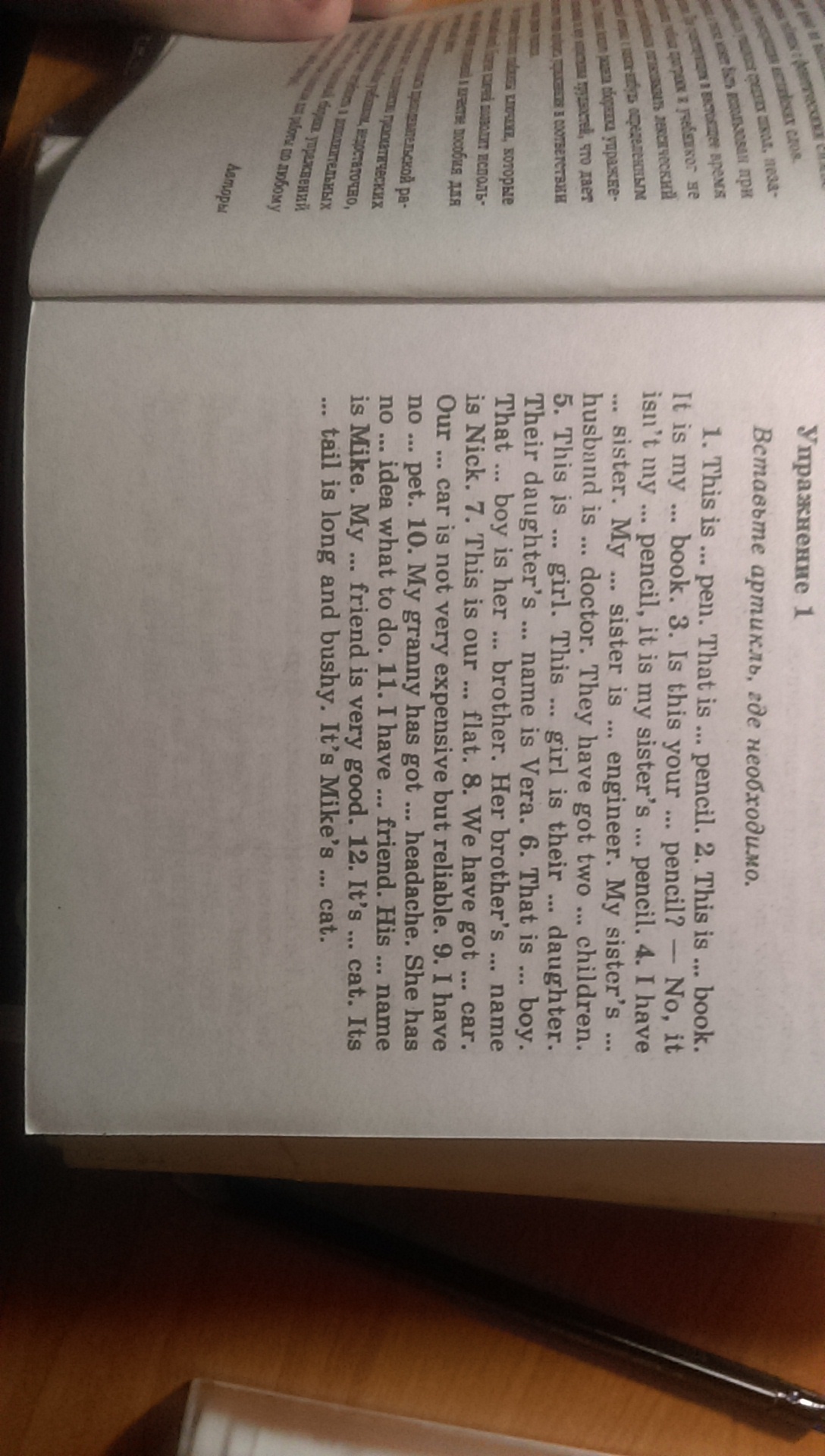 . This is a pen. The pen is red. 2. These are pencils. The pencils are black. 3. This is soup. The soup is tasty. 4. In the morning I eat a sandwich and drink tea. 5. She gave me coffee and a cake. The coffee was hot. The cake was tasty. 6. Do you like ice cream? 7. I see a book in your hand. Is the book interesting? 8 She bought meat, butter and potatoes yesterday. She also bought a cake. The cake was very tasty. We ate the cake with tea. 9. This is my table. On the table I have a book, two pencils, a pen and paper. 10. This is a bag. The bag is brown. It is my sister's bag. And this is my bag. It is yellow. Вроде так)