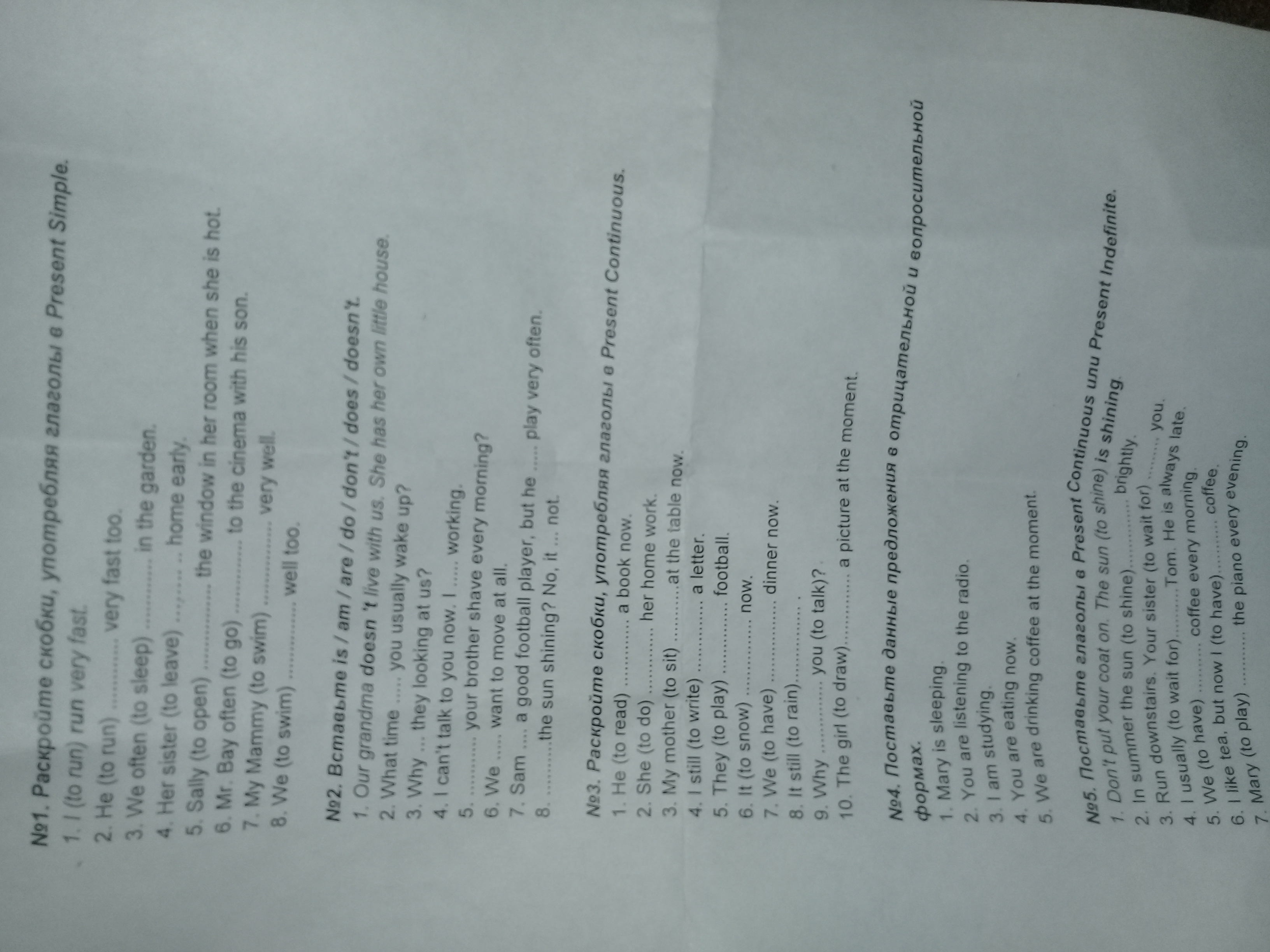 3. 1 is reading 2 is doing 3 is sitting 4 am writing 5 are playing 6 is snowing 7 are having 8 is raining 9 are you talking 10 is drawing