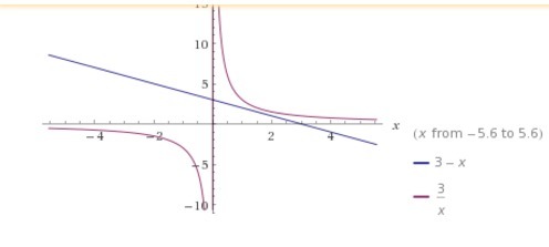 Построим наши функции и видим, что они не пересекаются, а значит решения нет.