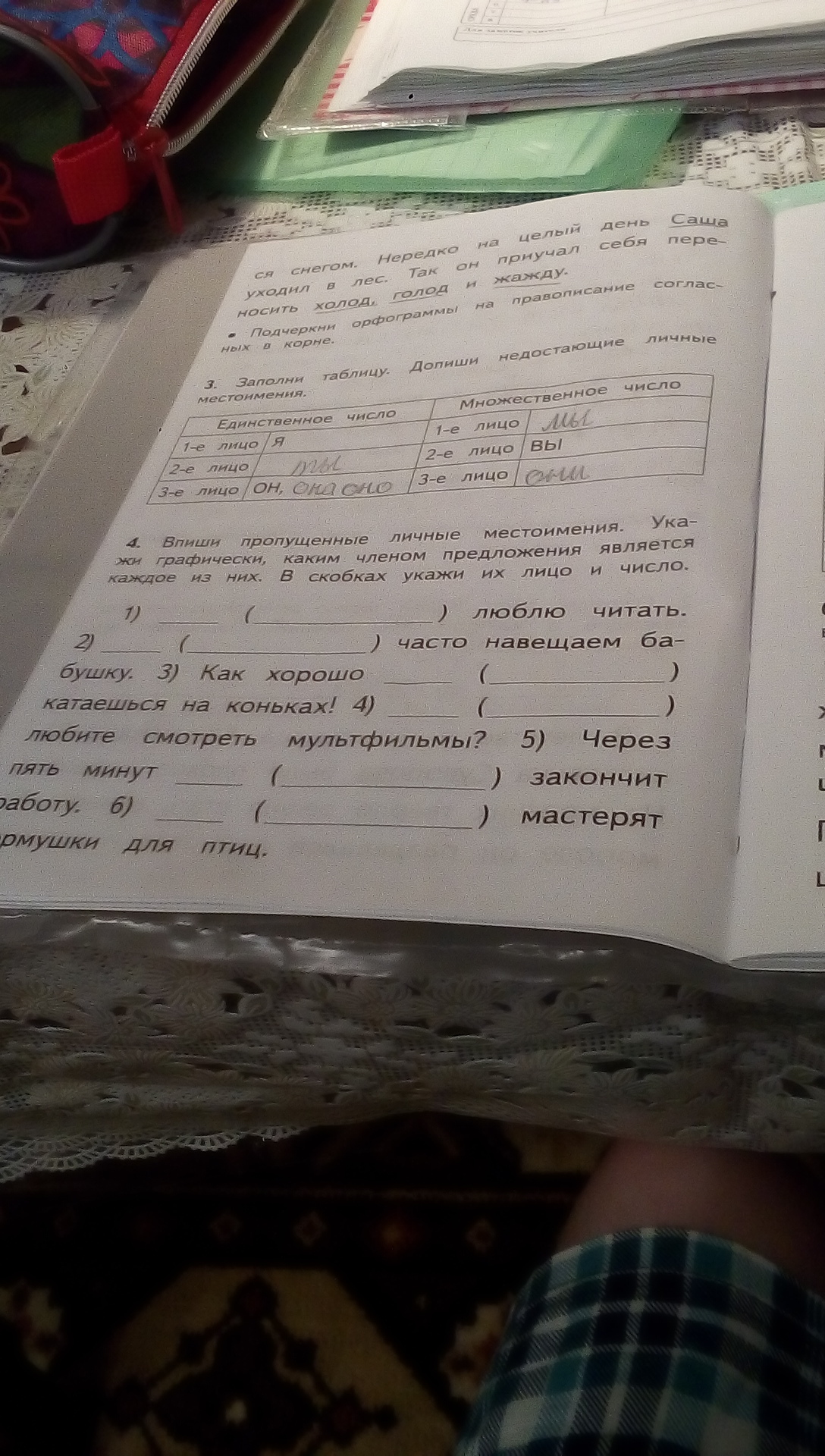 впиши пропущенные личные местоимения укажи графически Каким членом предложения является каждое из них в скобках укажи их лицо и число