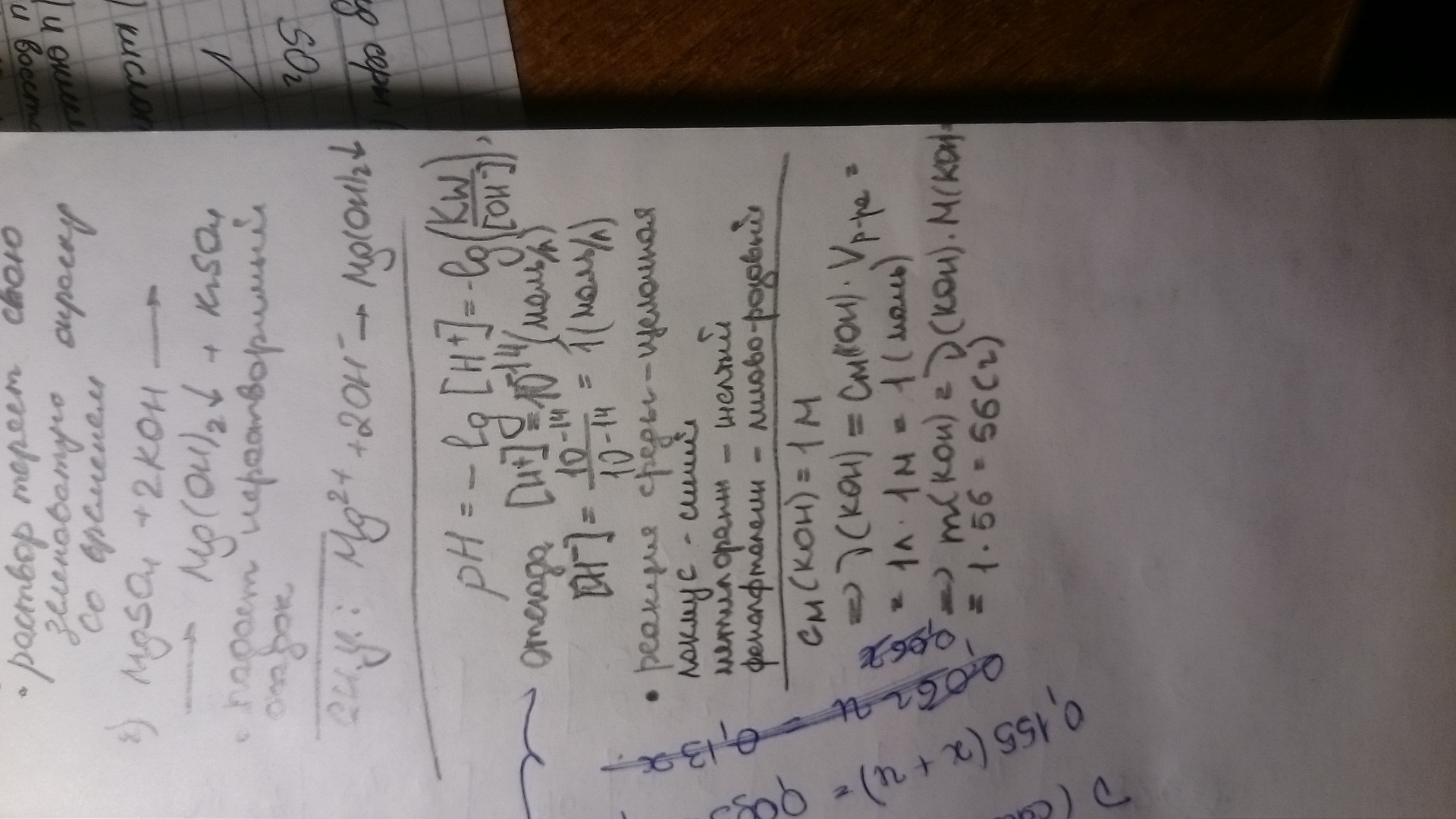 Зная величину рН раствора, вычислить концентрацию ионов Н+, концентрацию ионов ОН-, указать реакцию среды и окраску лакмуса, метил-оранжа и фенолфталеина в этом растворе. Рассчитать массу H2SO4 (KOH) в 1 литре раствора.
