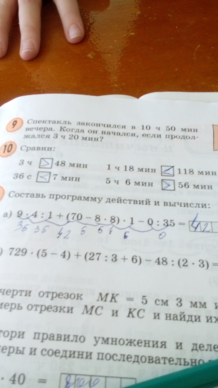 1) 10ч 50мин - 3ч 20мин = в 7ч 30мин - кончился спектакль