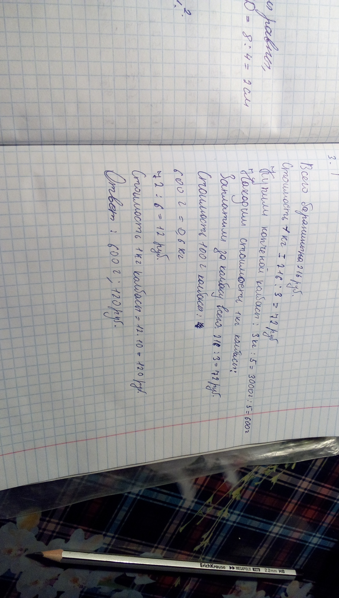 семья собирается на дачу родители купили 3 килограмма баранины для шашлыка по цене 216 руб. за килограмм а копченой колбасы в 5 раз меньше за колбасу заплатили в 3 раза меньше чем на баранину сколько купили колбасы и какова ее стоимость