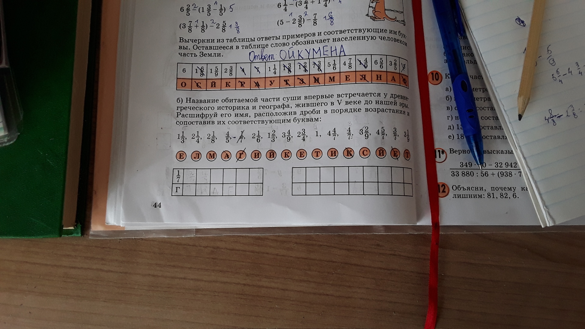 Название обитаемой части суши впервые встречается у древнегреческого историка и географа, жившего в пятом веке до нашей эры. Расшифруй его имя, расположив дроби в порядке возрастания и сопоставив их соответствующим буквам. Помогите пожалуйста!!!