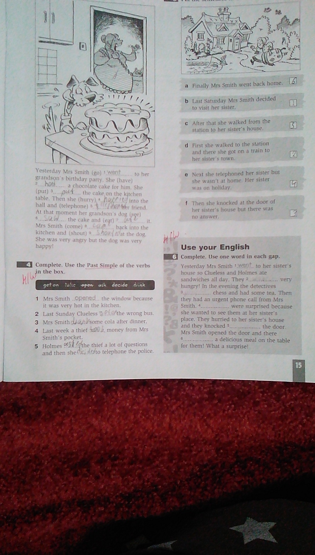 They were very hungry! In the evening detectives played chess and had some tea. Then they had an urgent phone call from Mrs Smith. They were surprised because she wanted to see them at her sister's house an they knocked on the door.Mrs Smith opened the door and there was a delicious meal on the table for them! What a surprise!
