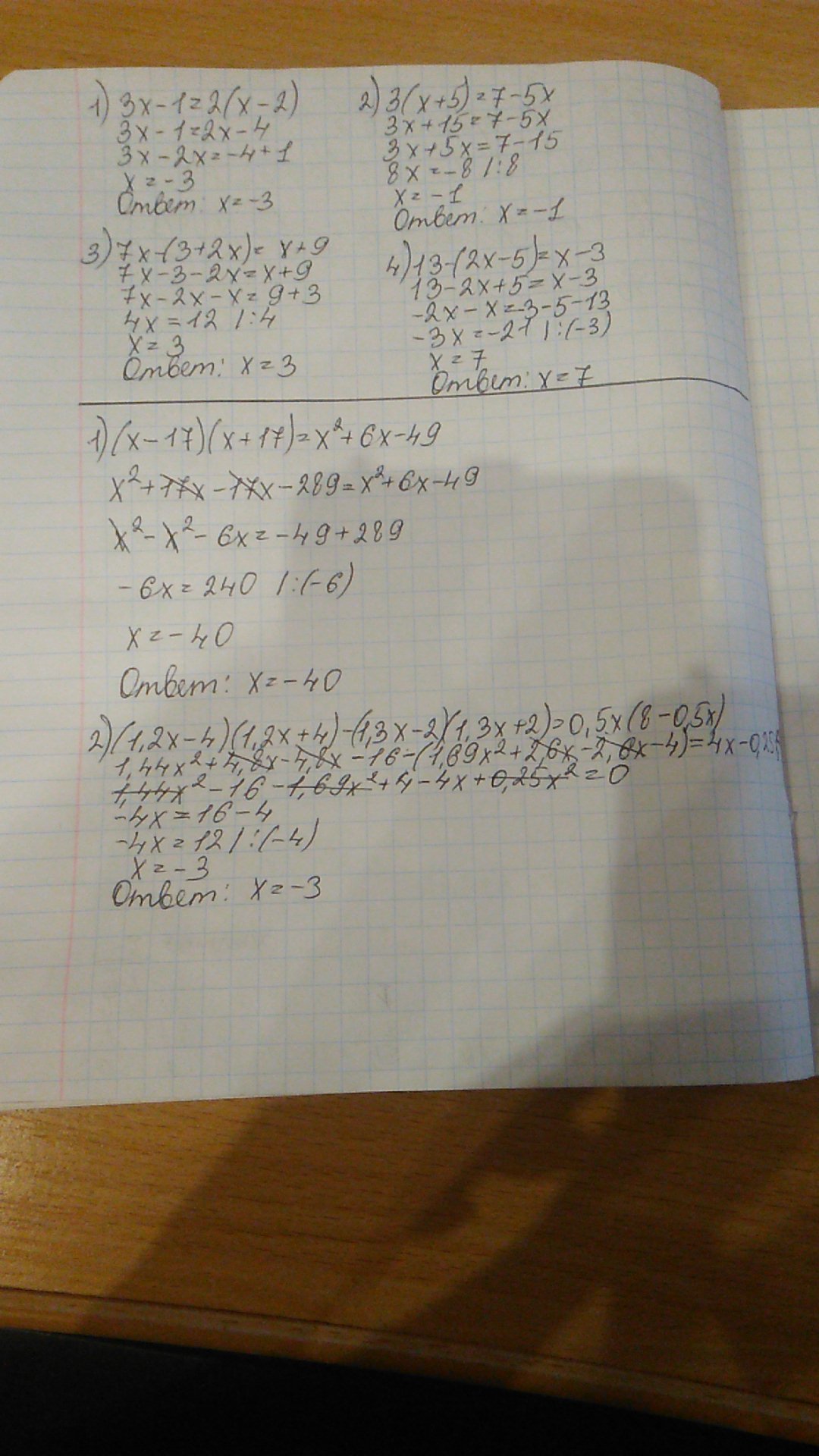 решите уравнение 1) (x-17)(x+17)=x^2+6x-49. 2) (1,2x-4)(1,2x+4)-(1,3x-2)(1,3x+2)=0,5x(8-0,5x) помогите пожалуйста