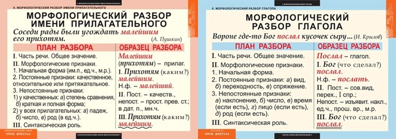 Вот пример Морфологического разбора имени прилагательного(красная табличка)