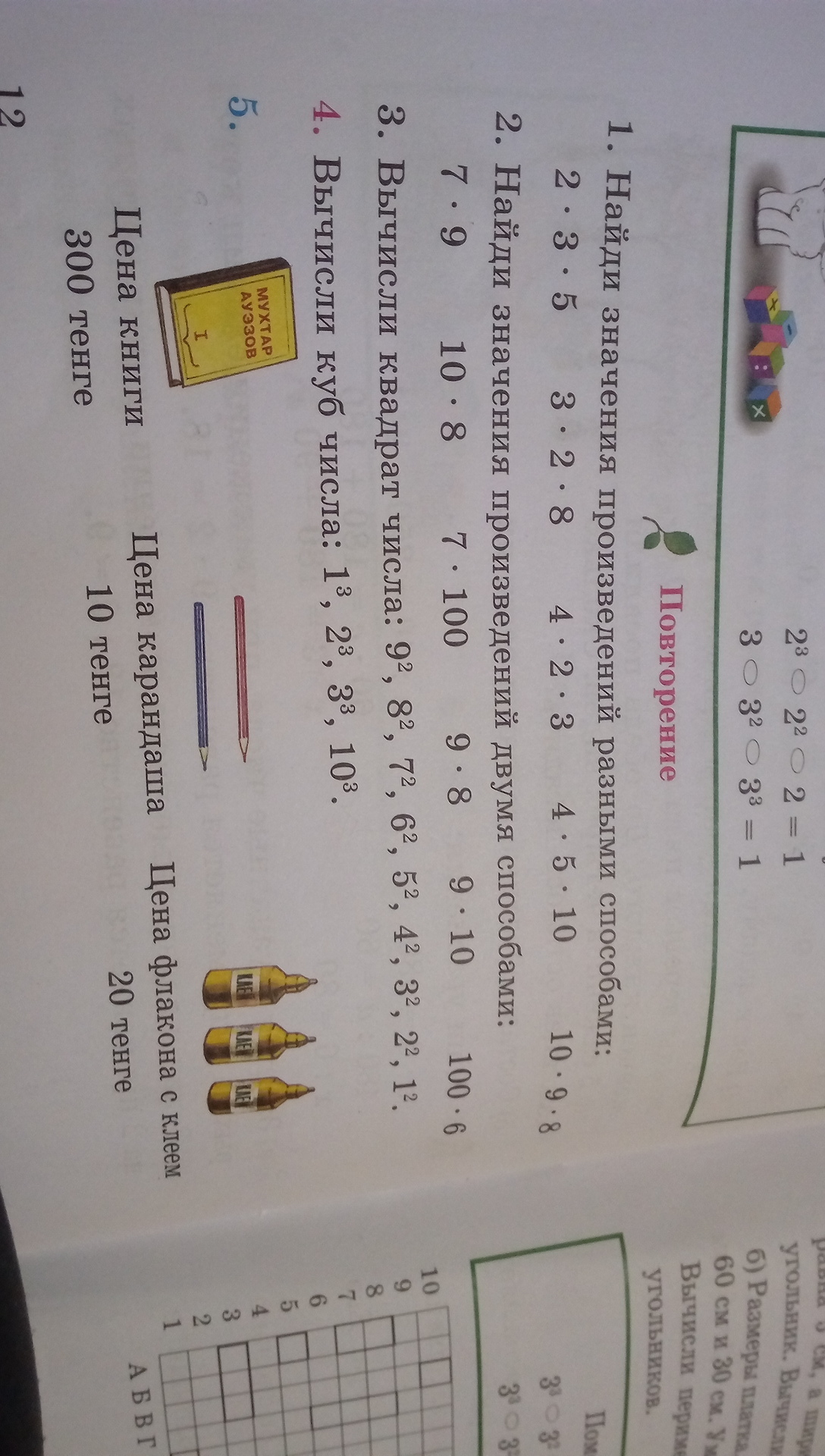 В третьем номере ты просто умножаешь число на само себя, а в четвёртом ты умножаешь число на само себя два раза