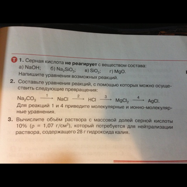 В) SiO2 + H2SO4 = \\ не идет так как оба вещества обладают сходными свойствами