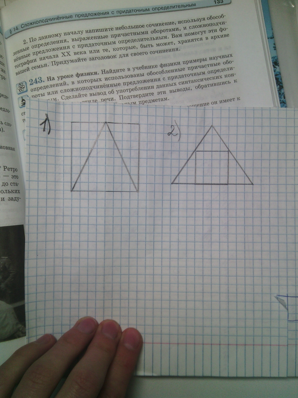помоги начертить четырехугольник и треугольник так, чтобы :1) треугольник полностью поместился в четырехугольнике ;2) четырех угольник полностью в в треугольнике .