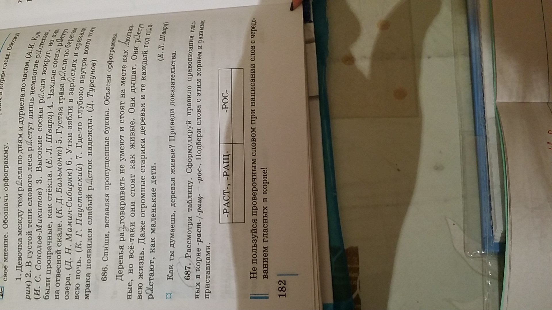 Рассмотри таблицу Сформилируй правило правописания гласных в корне -раст - / -ращ -/ -рос Подбери слова с этим корнем и разными приставками упражнения 687