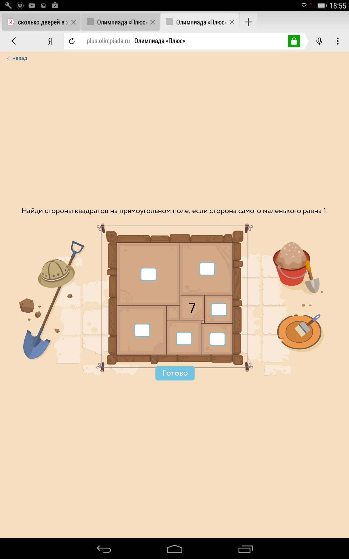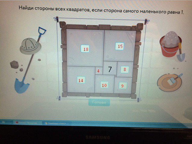 найди стороны квадратов на прямоугольном поле, если сторона самого маленького равна 1(самый маленький под 7, одним мм).спасибо.