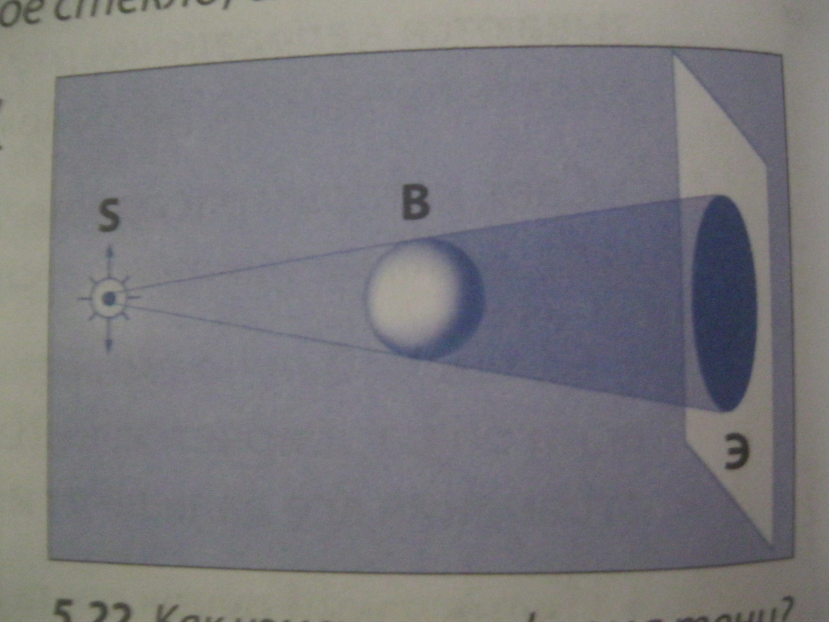 на экране получена круглая тень шара (рис.5.22) как будет изменяться форма тени при перемищении источника света S паралельно экватору?
