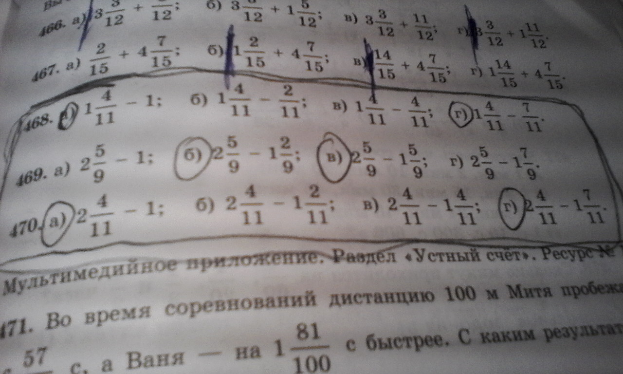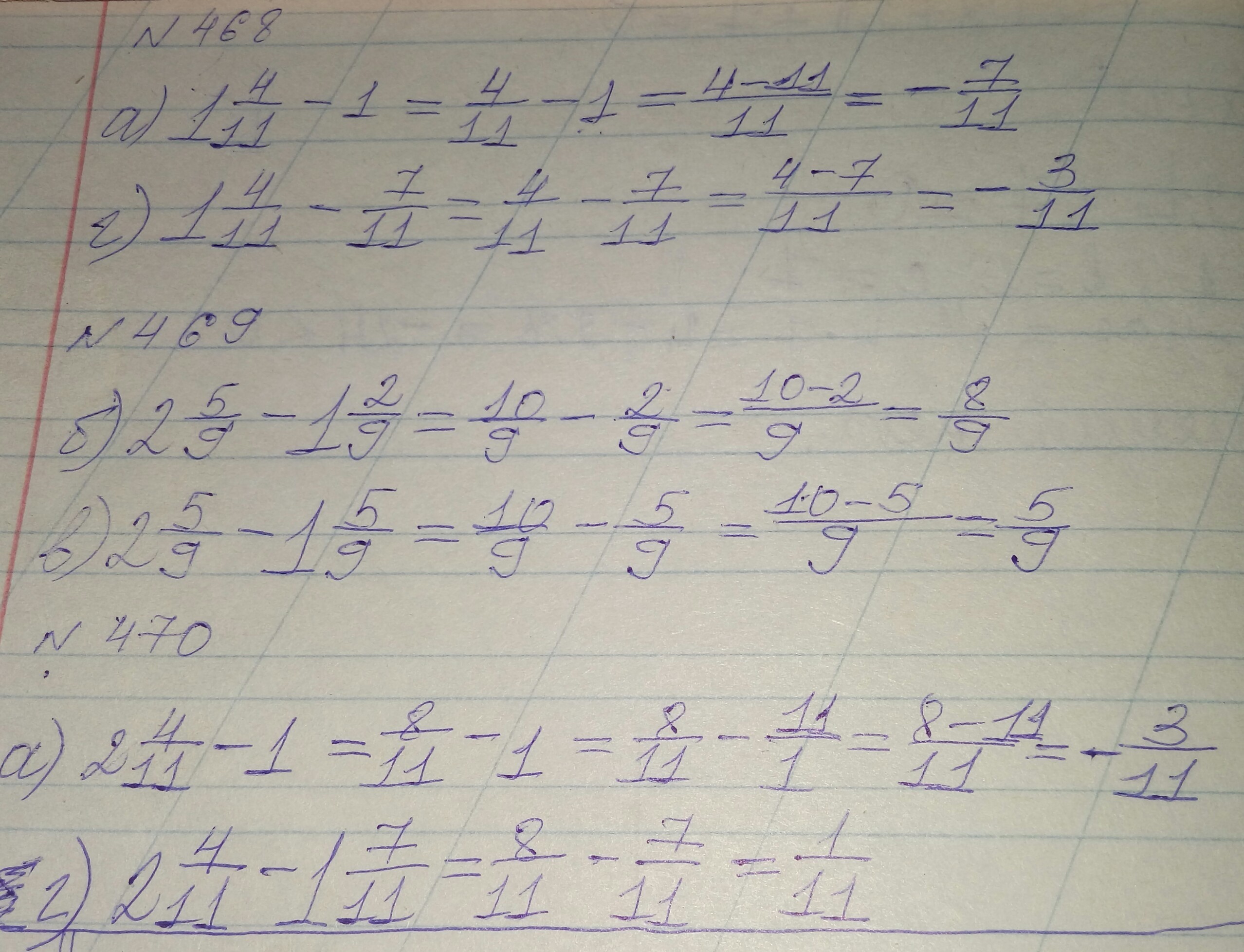 а) -7/11; г) -3/11; б) 8/9; в) 5/9; и номер 470 а) -3/11; г) 1/11