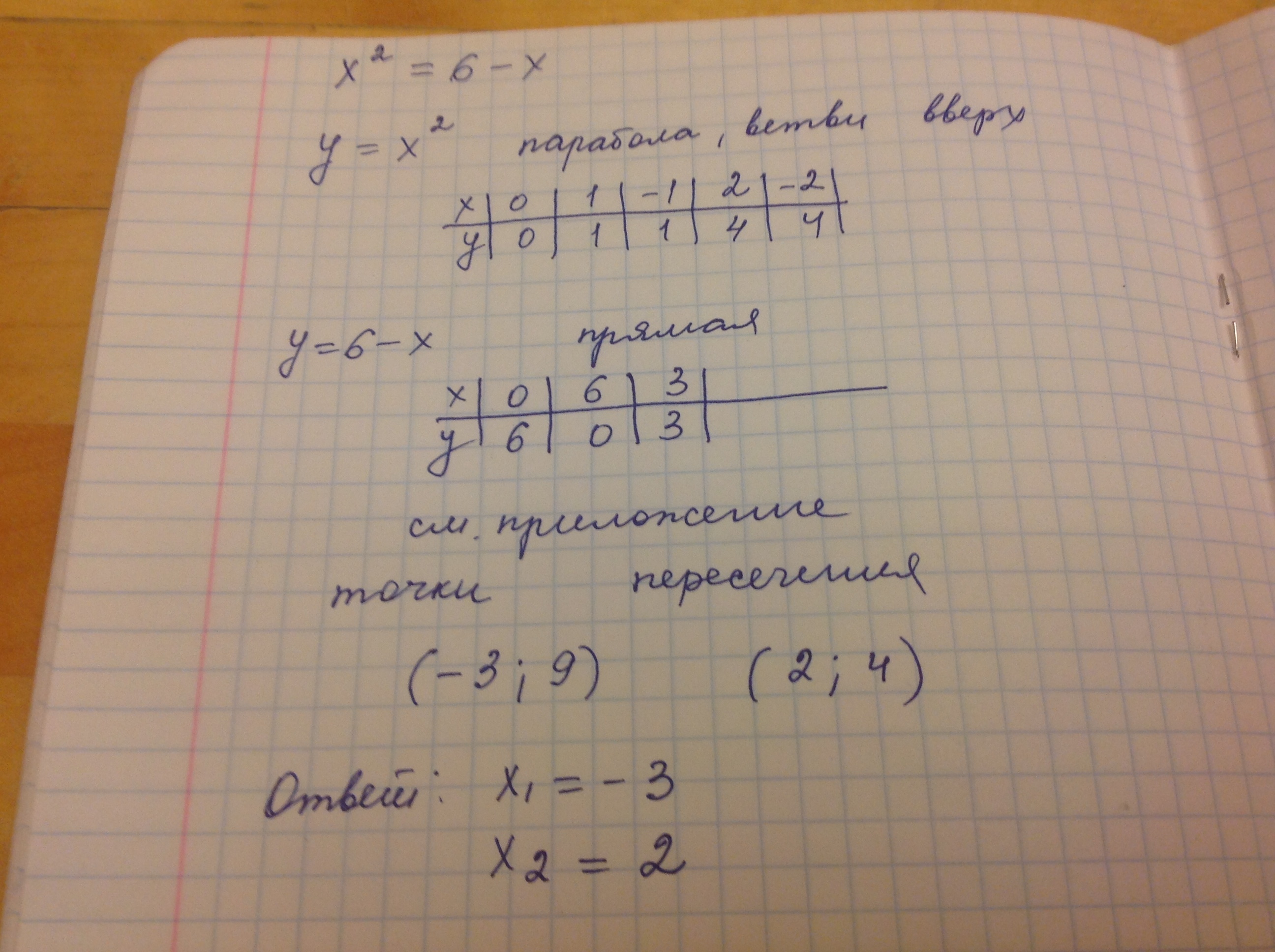 Решите графически уравнение  x^{2 = 6 - х