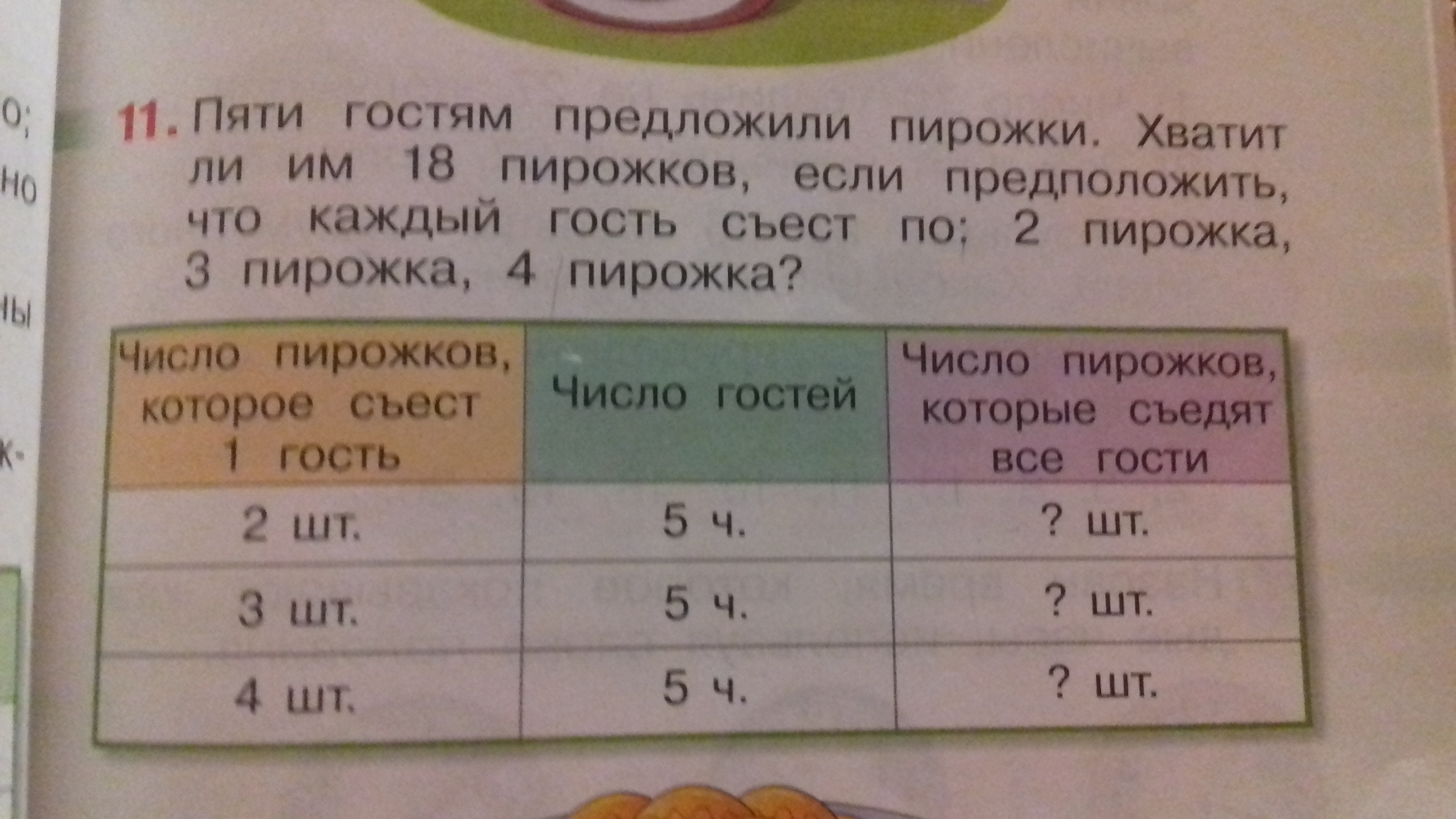 А вот в третьем случае не хватит, т.к. 5 гостей съедят по 4 пирожка. Все гости съедят 20 пирожков.
