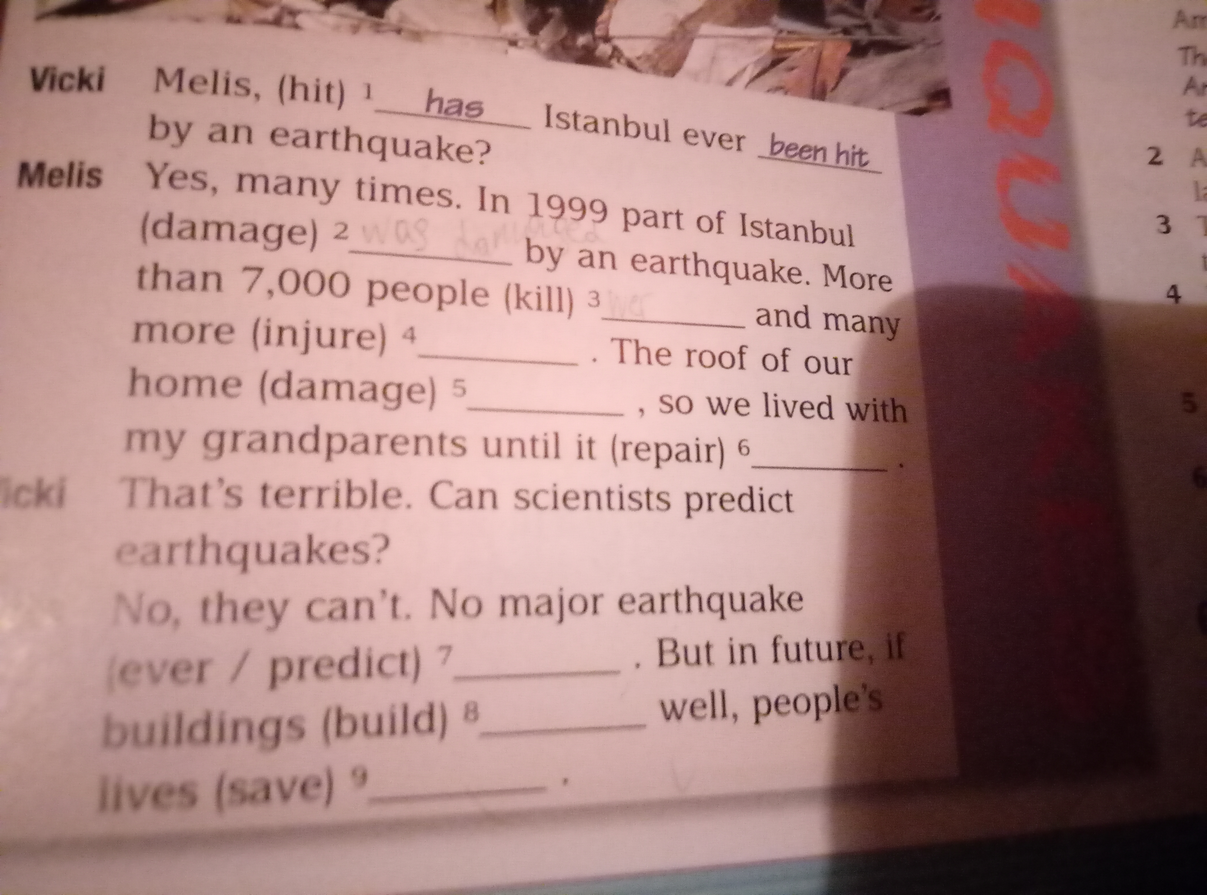 № 1 --were killed ,were injured, was damaged ,was repaired ,were built ,were saved