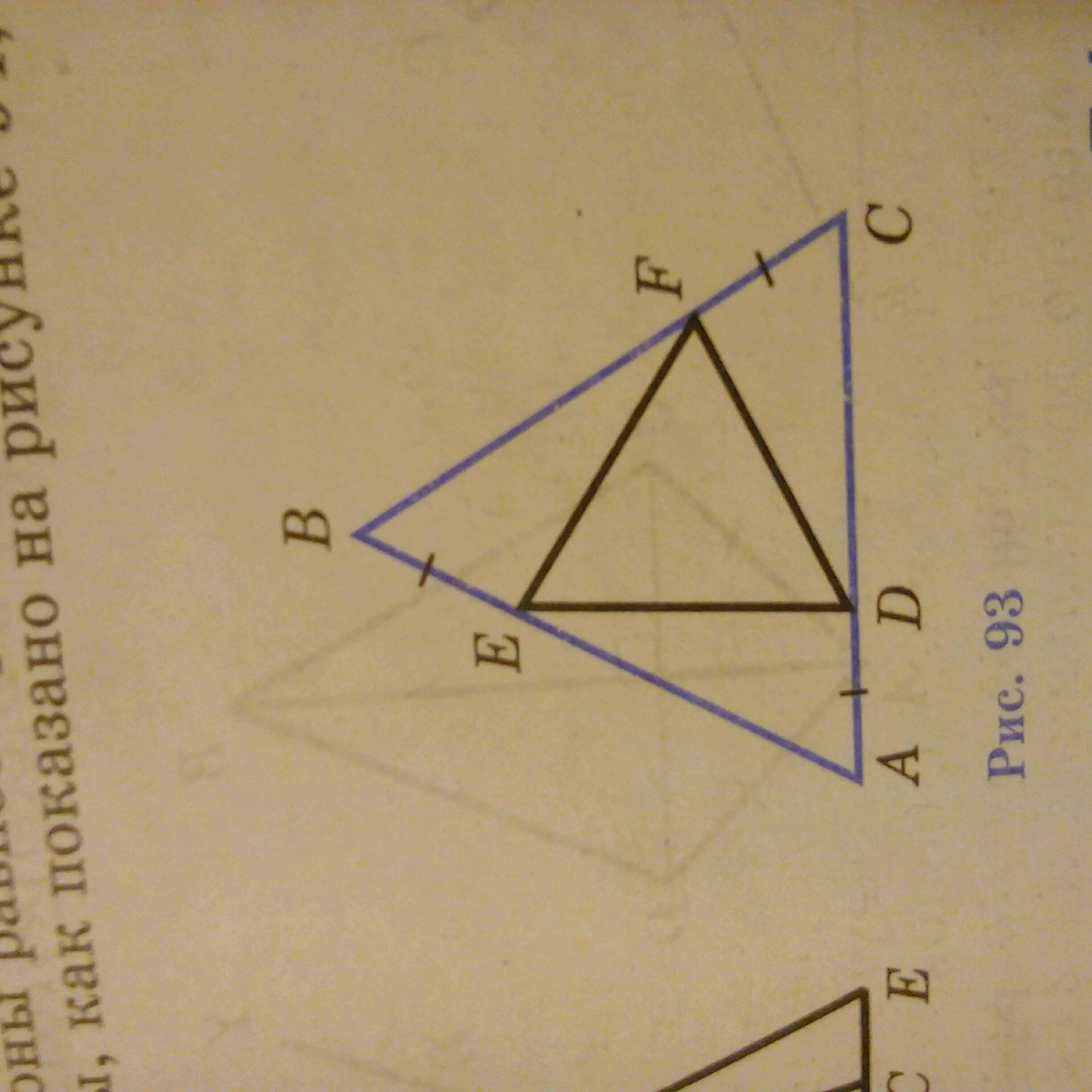 BF=DC=EA, BE=FC=AD, а углы BEF ADE DFC по 90 градусов, просто распиши по т. Пифагора все стороны треугольника DEF и они все будут равны друг другу