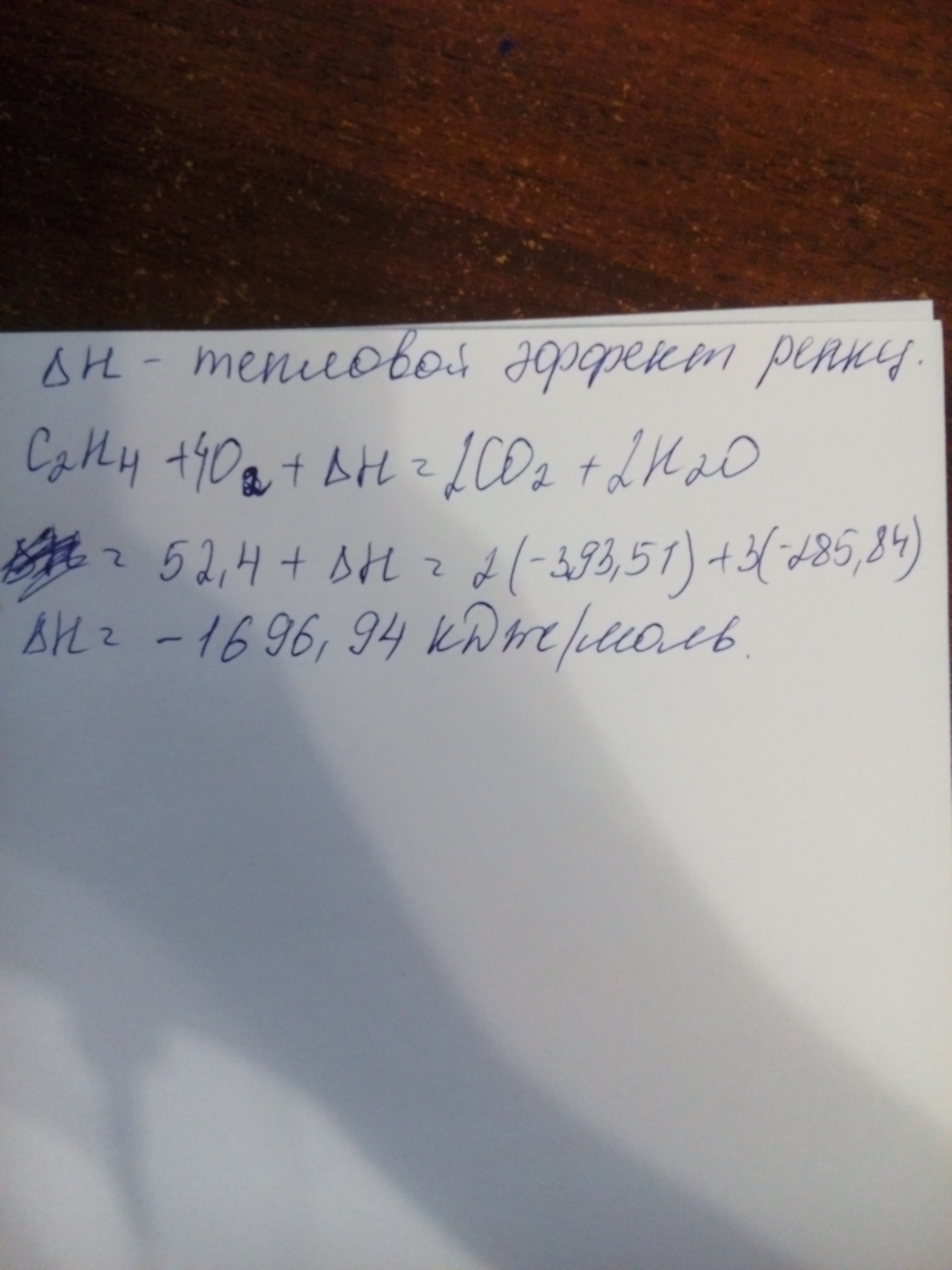 Вычислите тепловой эффект реакции горения этилена С2Н4(г), учитывая, что ее продуктами являются СО2(г) и Н2О(ж).