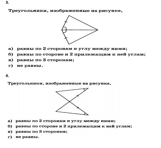 в 4 задании не хватает третьего элемента, чтобы утверждать, что они равны.