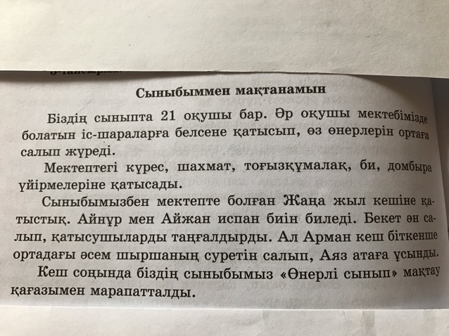 Всем классом участвовали при школьном Новом годе.Айнур и Айжан танцевали испанский танец. Бекет удивил всех своим пением.А Арман до окончания вечера рисовал ёлку и подарил Деду Морозу. В конце вечера наш класс был награжден грамотой "Талантливый класс"