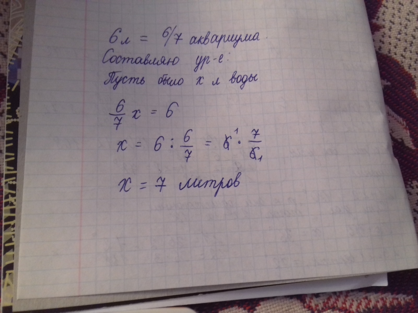 в аквариум налили 6 литров воды заполнив шесть седьмых его объема Сколько литров воды вмещает аквариум