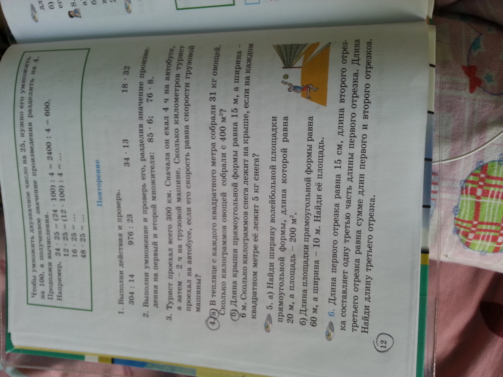 Длина крыши прямоугольной формы равна 15 метров, а ширина 6 метров. Сколько кг снега лежит на крыше, если на каждом квадратном метре её лежит 5 кг снега?