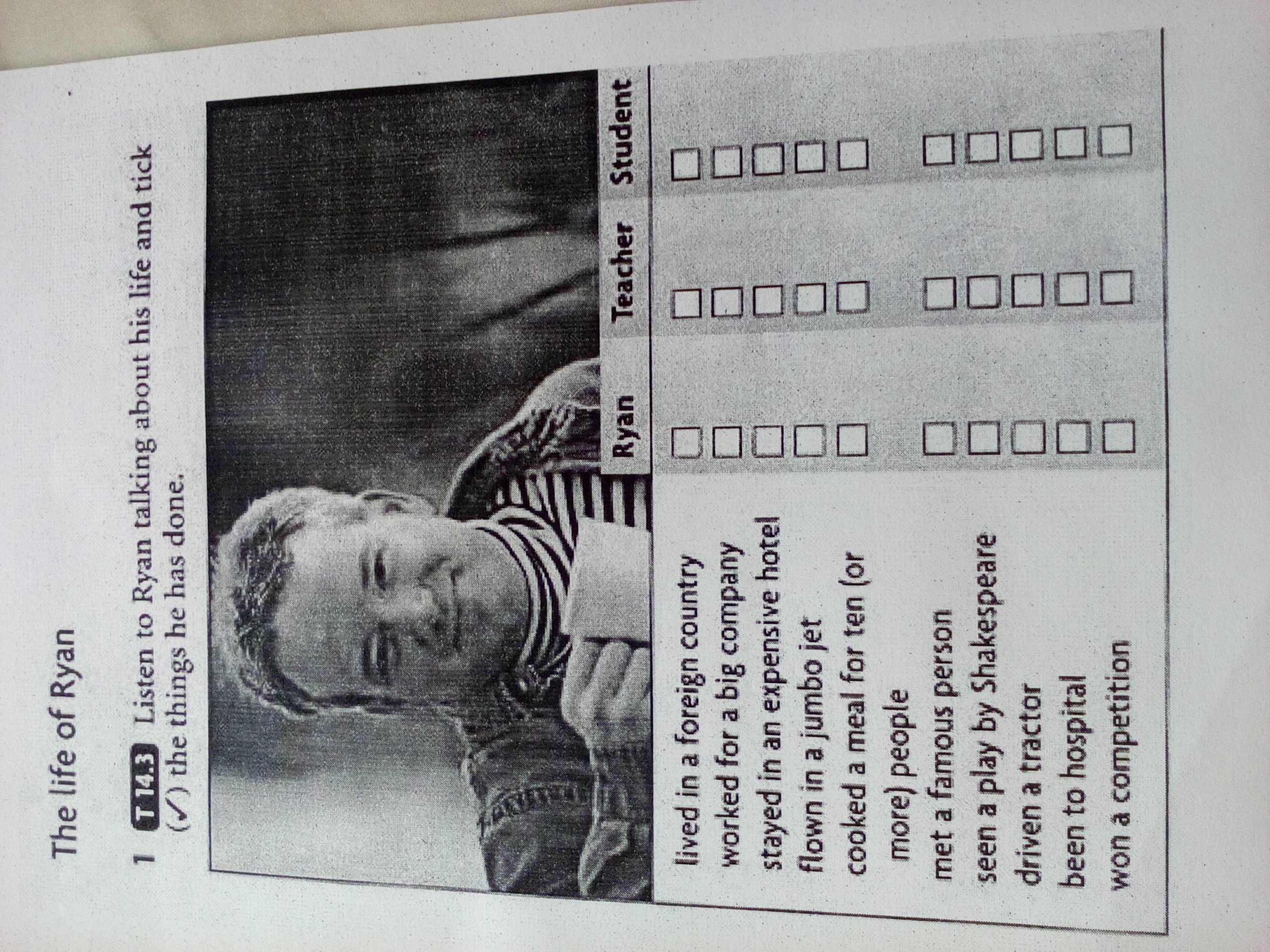 А есть текст или что-нибудь, ведь в задании сказано, что нужно послушать рассказ Райана о его жизни и отметить те вещи которые он уже сделал.