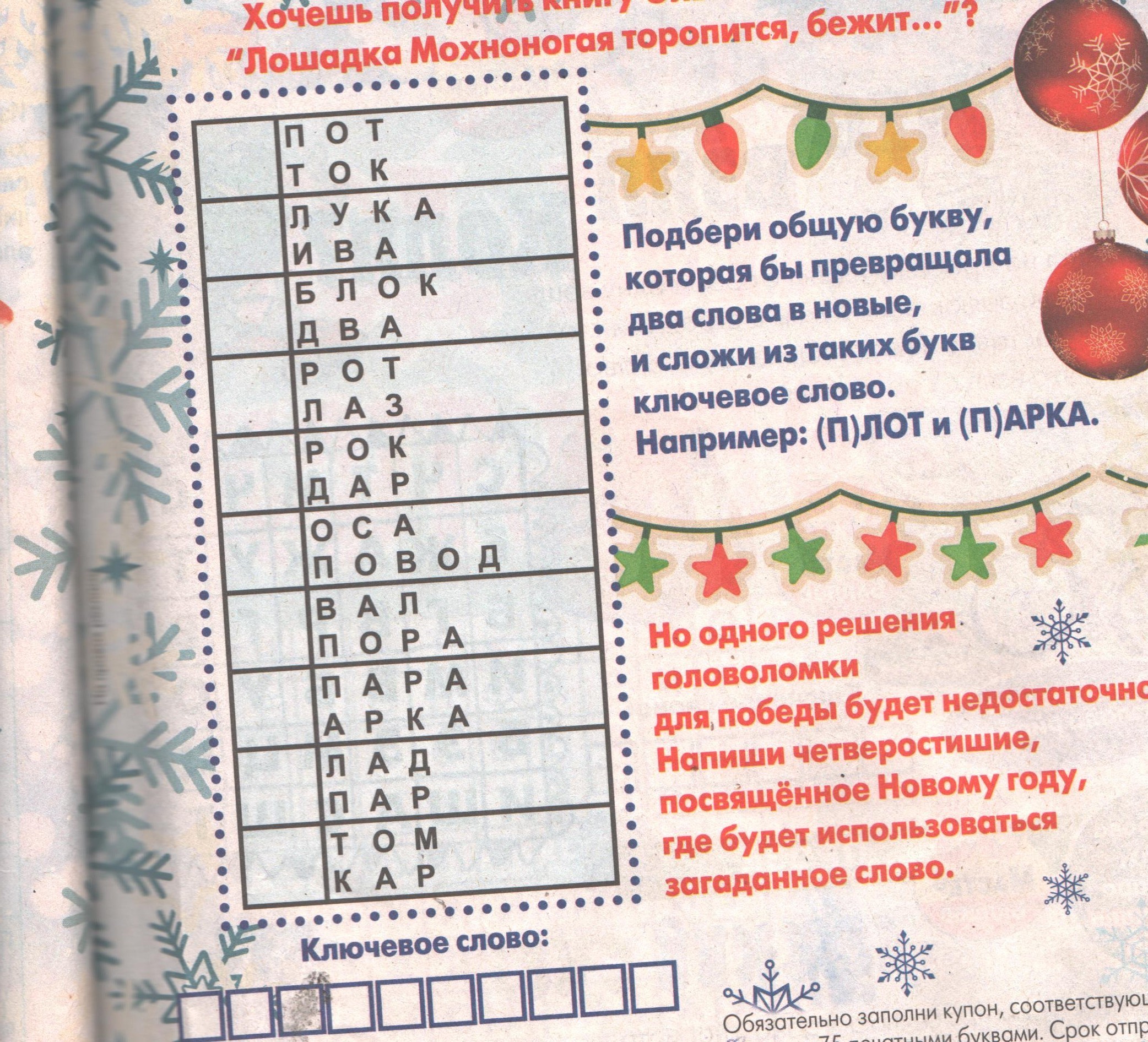 Ключевое слово : снегурочка.