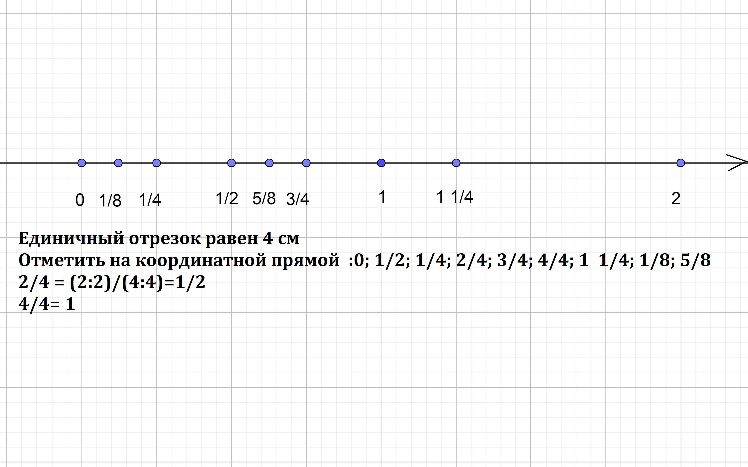 Изобразите на координатной оси с единичным отрезком 4 см точки: