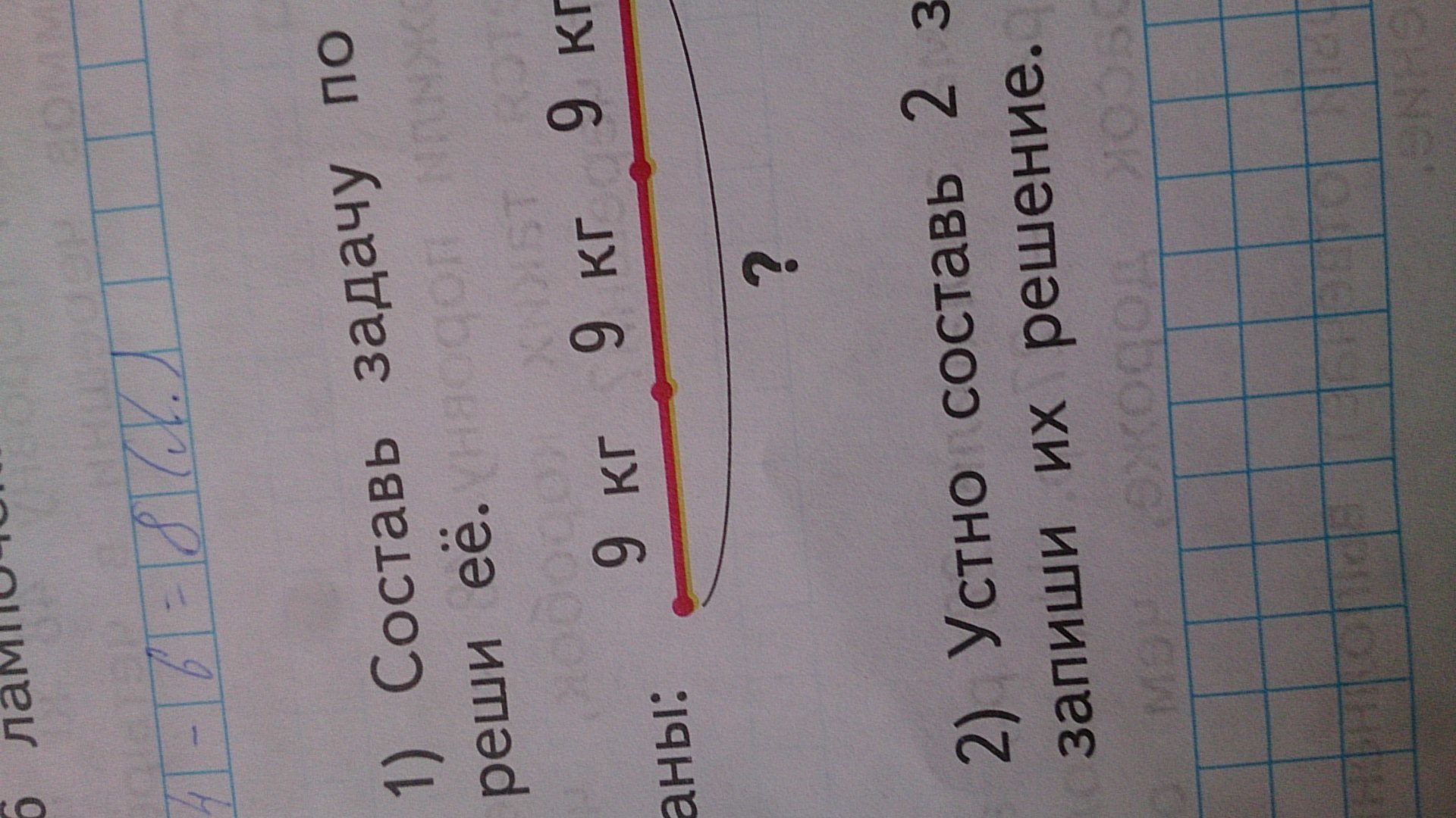 составь задачу по схематическому чертежу бананы 9 килограмм 9 килограмм 9 килограмм сколько всего
