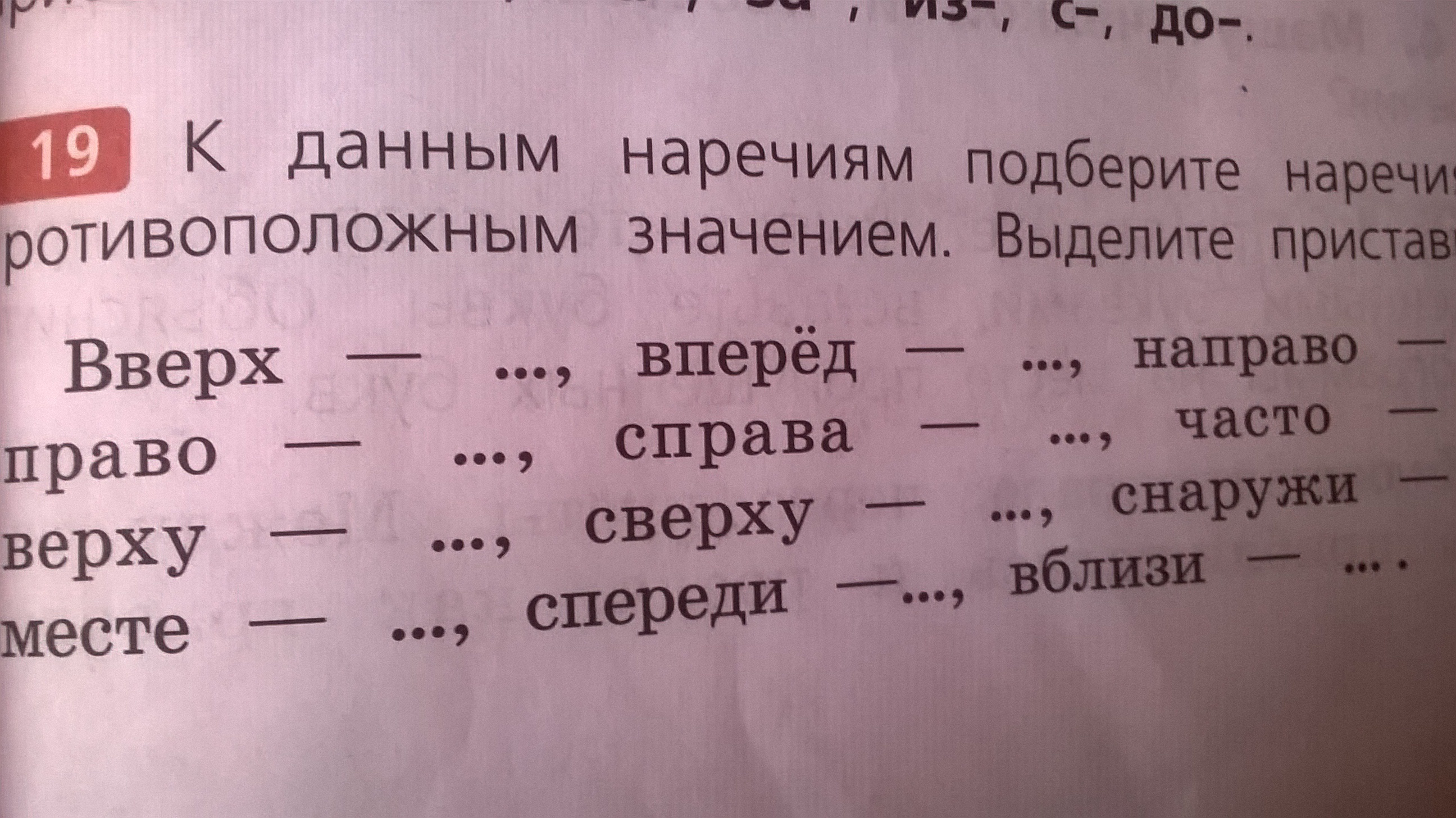 Право-лево,справа-слева,часто-редко,вверху-внизу,сверху-снизу,снаружи-внутри,слово "месте" не понимаю как,ты обрезал наверное буквы первые,спереди-сзади,вблизи,вдали