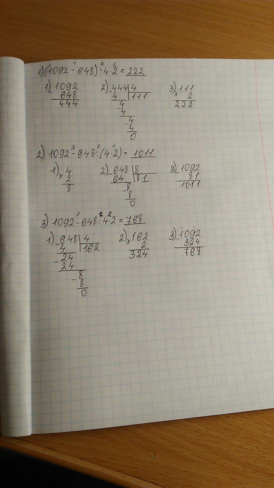 решить письменно а как записать столбиков в тетрадь?(1092-648):4*2=