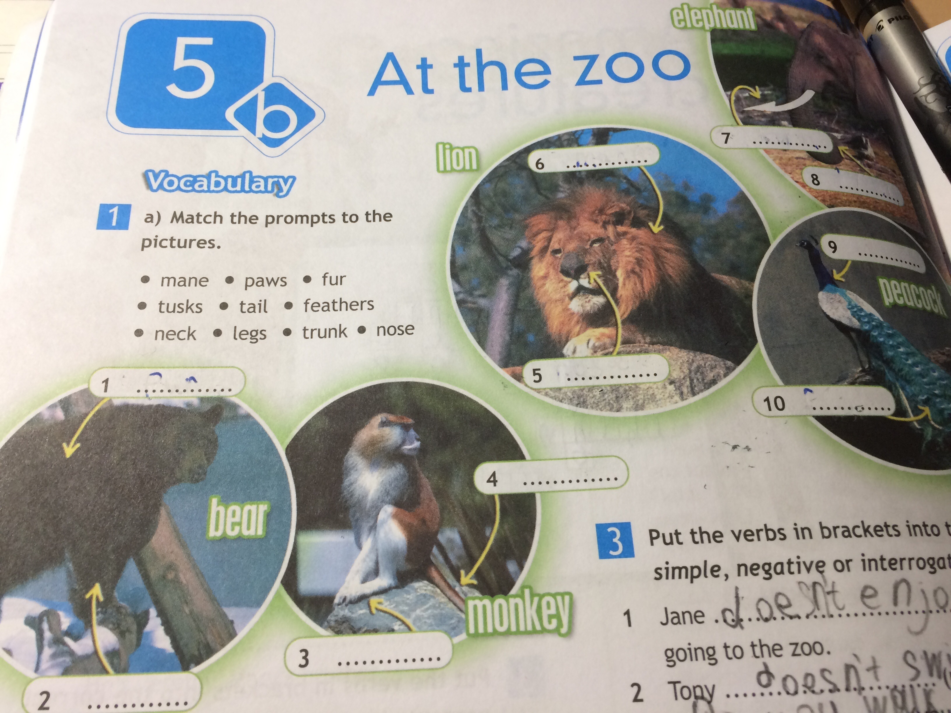 Bear (медведь) - 1 - fur (мех) и 2- paws (лапы),