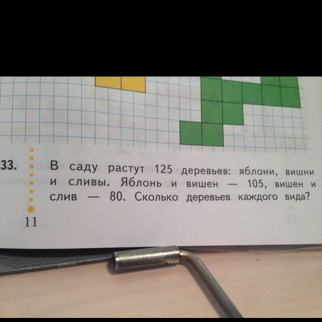 Ответ: 45 яблонь, 20 слив, 60 вишен.
