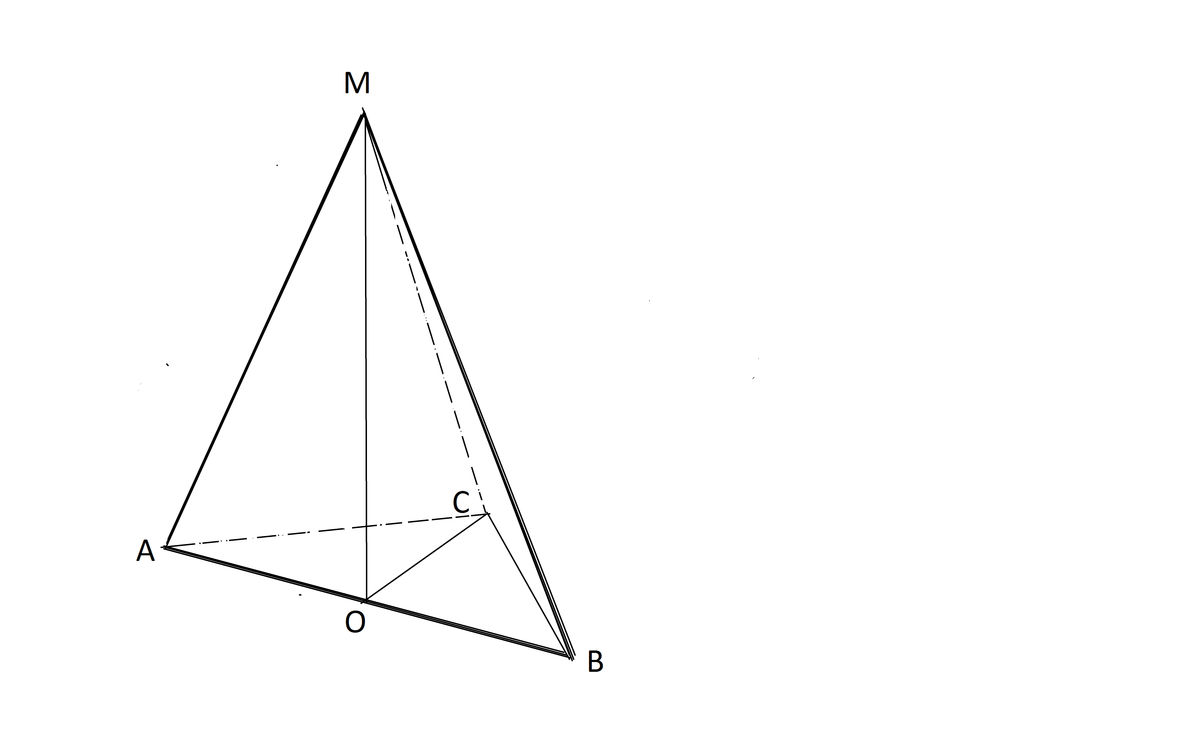 Следовательно, основанием перпендикуляра из М к плоскости треугольника АСВ является середина О гипотенузы АВ треугольника АСВ