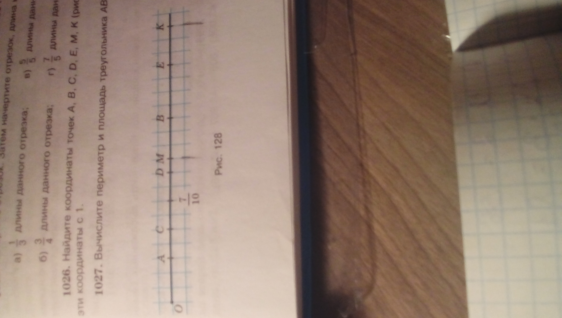 найдите координаты точек А,В,С,D,E,M,K(рис.128) и сравните эти координаты с 1.
