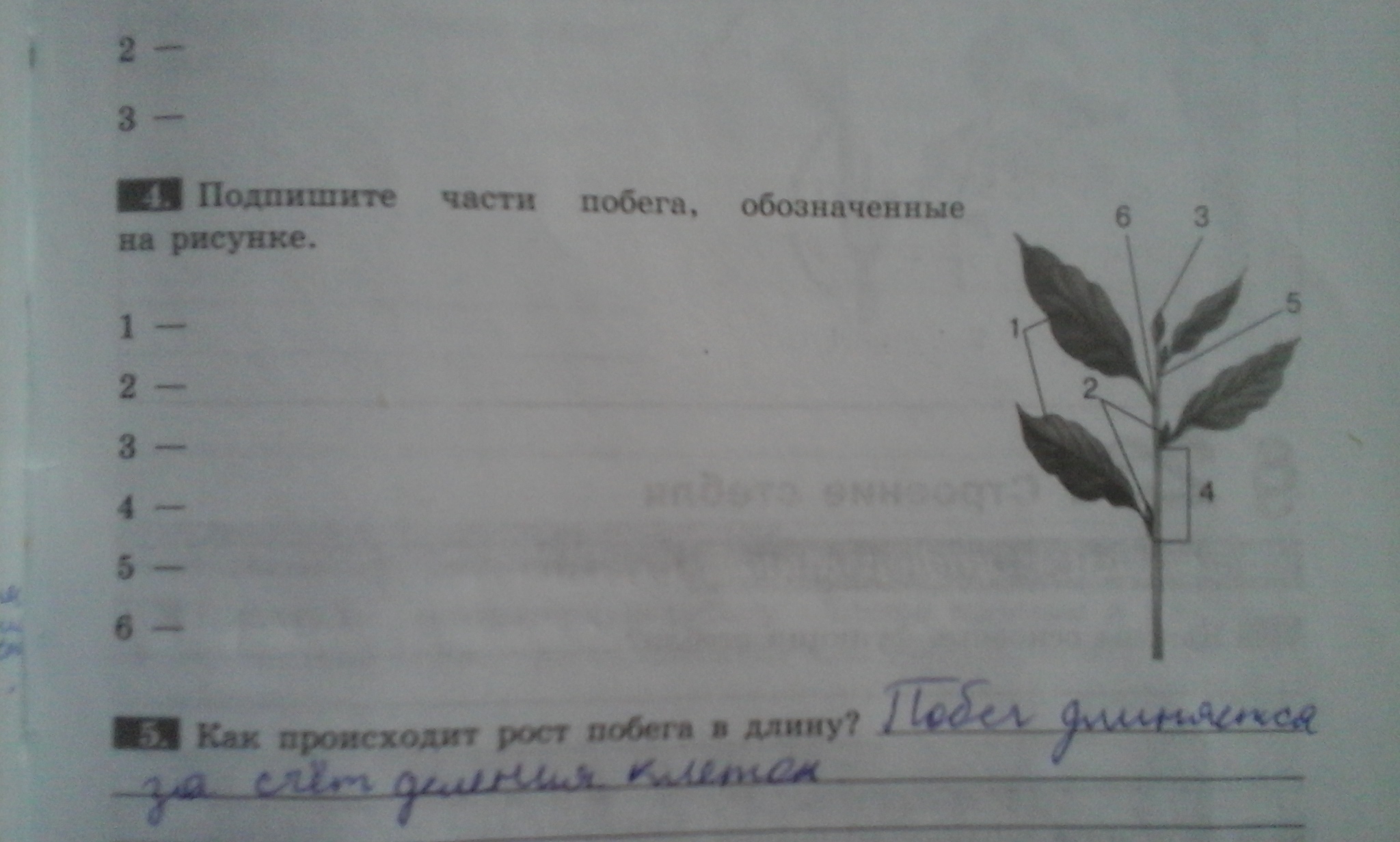 Подпишите часть побега , обозначенные на рисунке