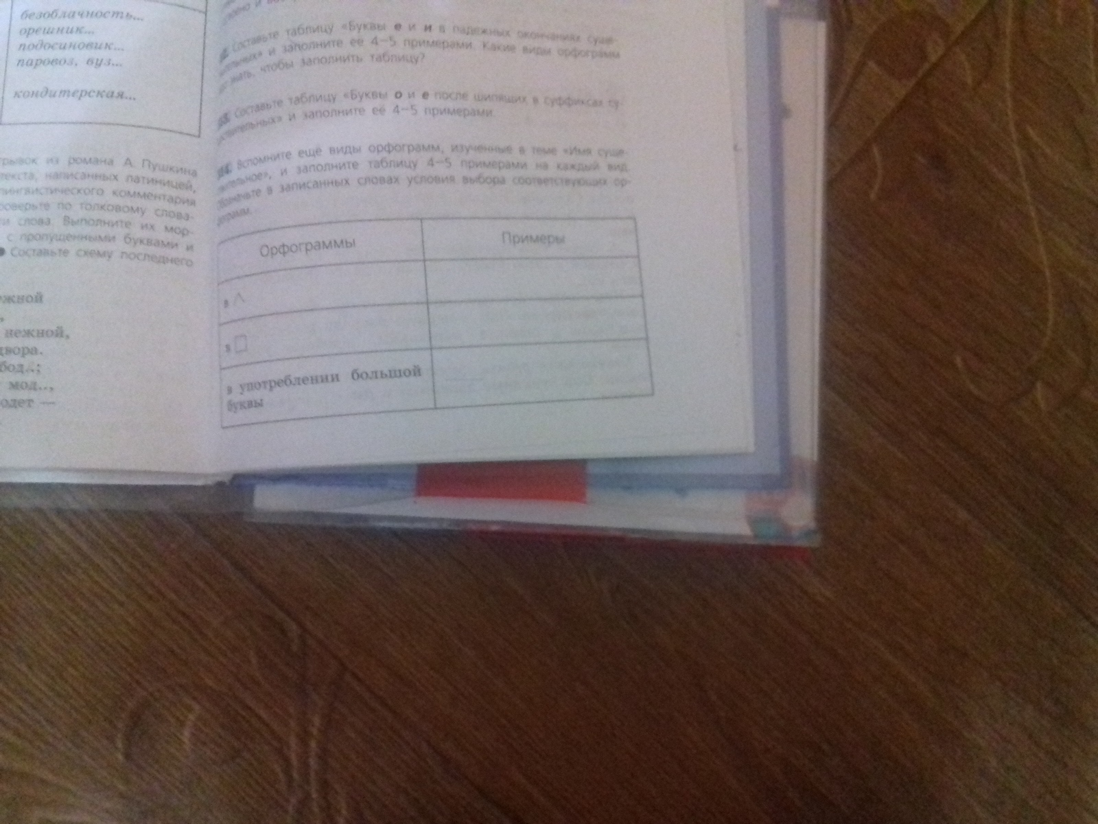 СРООООЧЧЧНННООО ПППППОООООЖЖЖАААЛЛЛУУУЙЙЙСССТТТААА ????????вспомните еще виды орфограмм изученные в теме имя существительное и заполните таблицу 4 или 5 примерами на каждый вид обозначьте в записанных словах условия выбора соответствующих орфограмм