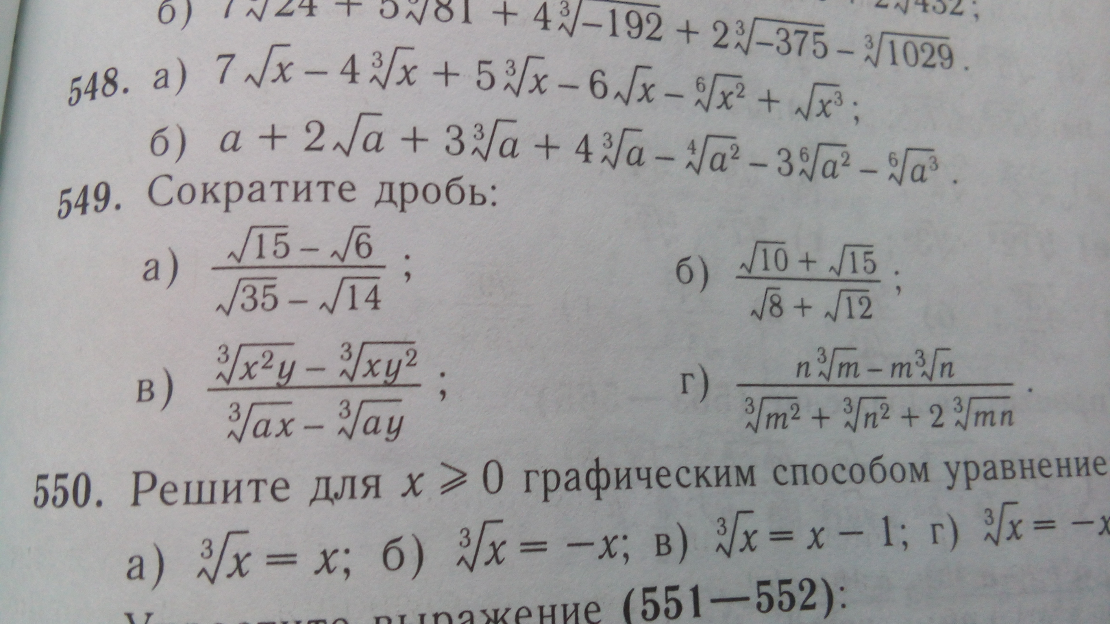 a) вытаскиваешь в числителе за скобку sqrt(3), а в знаменателе sqrt(7) и получаешь выражение: (sqrt(3)*(sqrt(5)-sqrt(2))/(sqrt(7)*(sqrt(5)-sqrt(2))) = sqrt(3)/sqrt(7) sqrt-корень числа