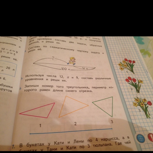 Измерь отрезок и все три треугольники потом сложи их длину ну периметр и какой будет по длине отрезка тот верный