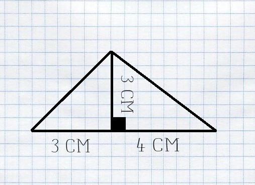 а) Построим из точки сначала прямую, которая равна 3 см, проведем перпендикуляр, который равен 3 см, и дальше прямую из начала перпендикуляра, равную 4 см. Соединим начало прямой, которая равна 3 см с концом перпендикуляра. И конец перпендикуляра с концом прямой, равной 4 см.