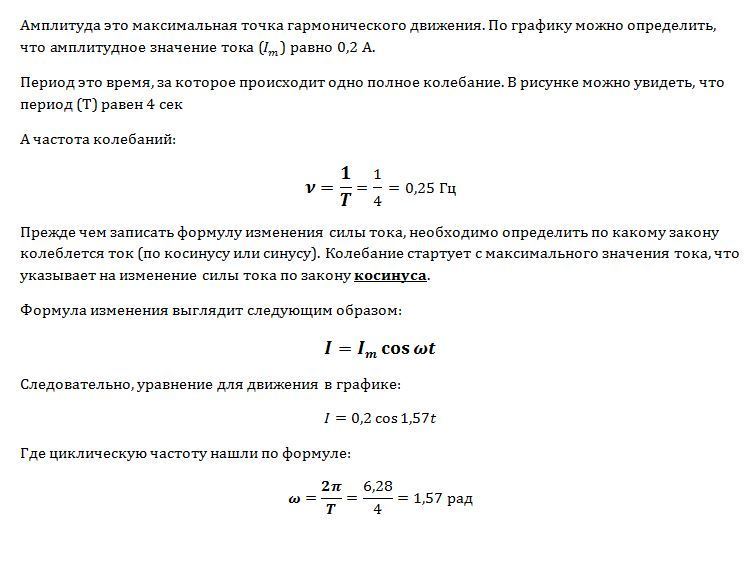 По графику найти амплитудное значение переменной силы тока, ее период и частоту. Записать формулу изменения силы тока со временем i(t).