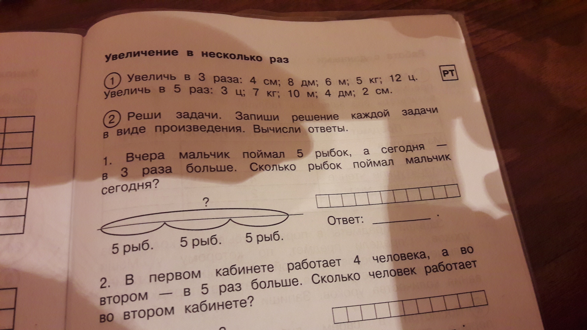 1) 5 рыбок×3=15 рыбок