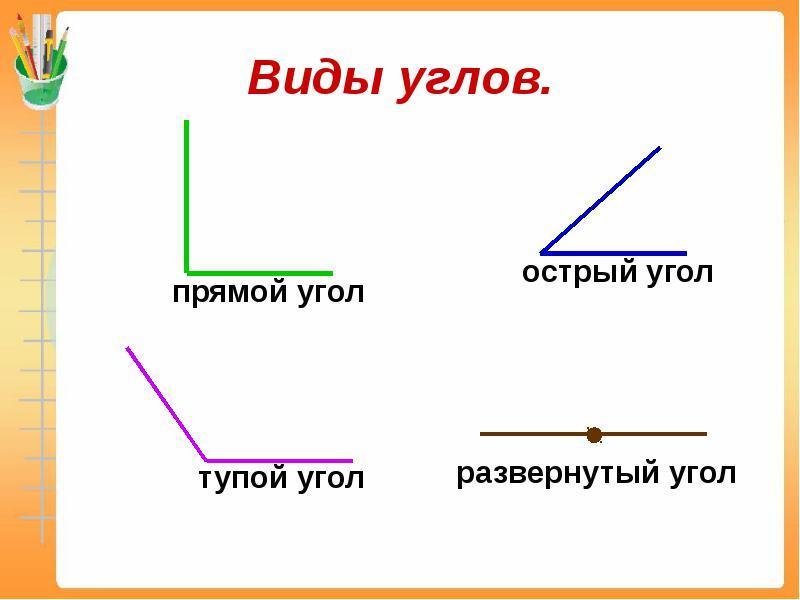Тупой угол больше 90 градусов Прямой угол 90 градусов Острый угол меньше 90 градусов расвёрнутый 180 градусов