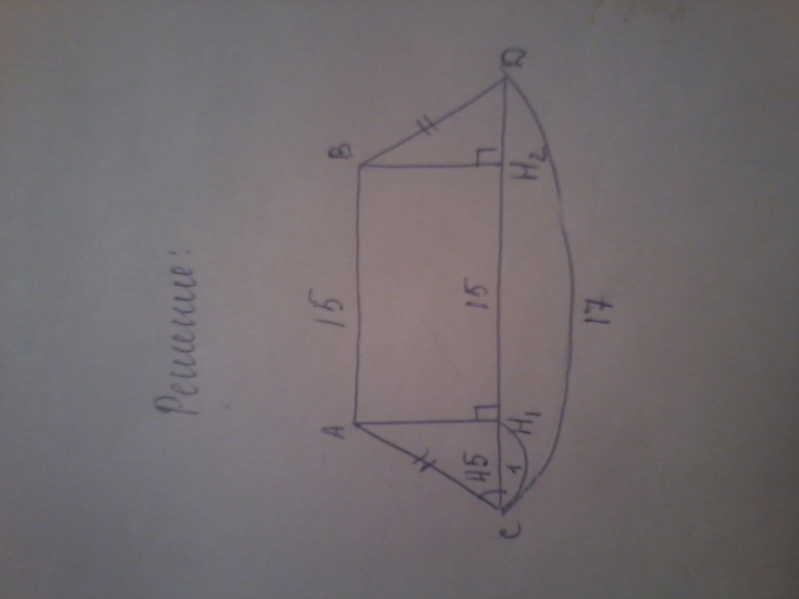 ABCD - равнобедренная трапеция, Н₁Н₂=15 => СН₁= (17-15):2= 1см.