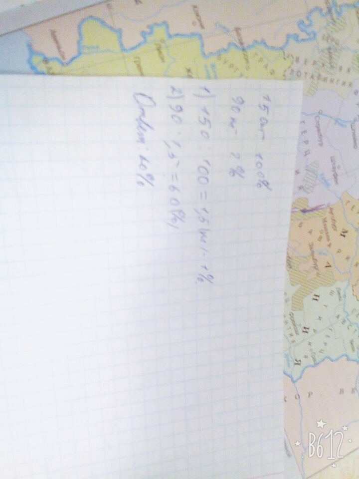 Магазин в первый день продал 150 кг арбузов, а во второй на 90 кг больше, чем в первый. Сколько процентов арбузов продал магазин во второй день по сравнению с первым днём?