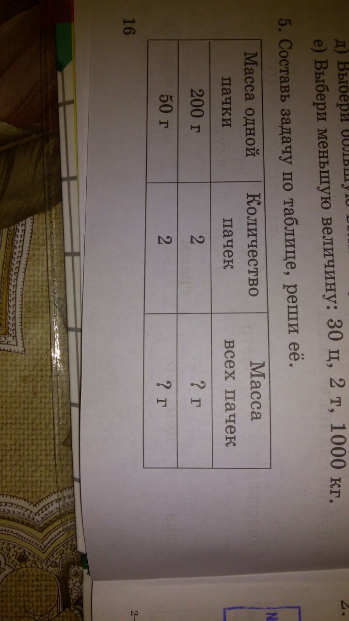 В магазине было 2 пачки хлопьев. Масса одной пачки - 50 г. Какова масса всех пачек?